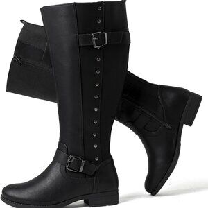Women's Wide Calf Knee High Boots Man-Made Leather Winter Tall Boots