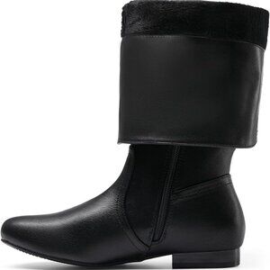 Features: Wide calf design for a comfortable fit, sleek knee-high silhouette with a relaxed slouch, side zipper for easy on and off, cozy faux fur lining to keep your feet warm, and a versatile black polyurethane exterior. These boots are a fall and winter wardrobe essential that easily pair with jeans, dresses, or skirts.