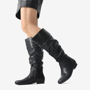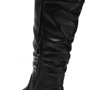 Women's Wide Calf Knee High Pull On Fall Weather Winter Boots - Black PU 6