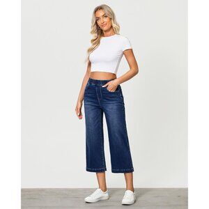 Women’s Wide Leg Capris Denim X-Large High Waist Pockets Stretchy Pants