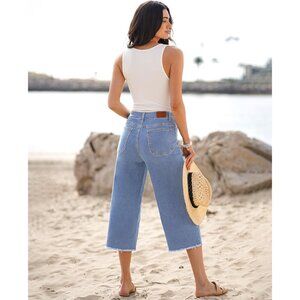Women's Wide Leg Crop Jeans Cotton Spandex Stretchy High Waisted Casual