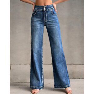Women's Wide Leg Jeans High Waisted Stretch Baggy Denim Pants Casual