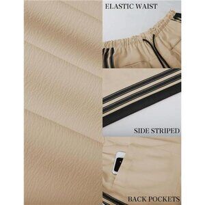 Features: Sporty side striped detailing, adjustable drawstring waistband, back-pocket design