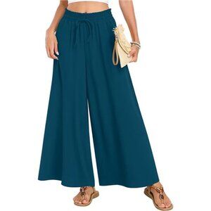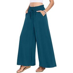 *Features: The casual wide leg pants have 2 side deep pockets. An elastic waist with drawstring allows for easy adjustments. The high-waisted cut flatters the figure. The flowy and elegant pants fall at the ankles like a long skirt. They can be dressed up or down