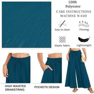 *Features: The casual wide leg pants have 2 side deep pockets. An elastic waist with drawstring allows for easy adjustments. The high-waisted cut flatters the figure. The flowy and elegant pants fall at the ankles like a long skirt. They can be dressed up or down