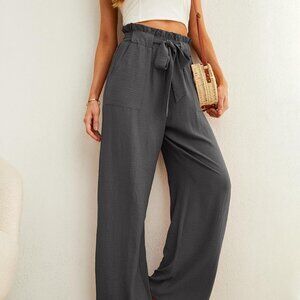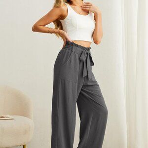 Women's Wide Leg Pants with Pockets High Waist Adjustable Knot Loose Casual Trou