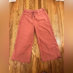 Womens Wide Leg Trousers Size M Old Rose Elastic Waist Pull on