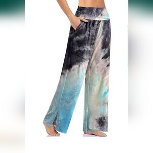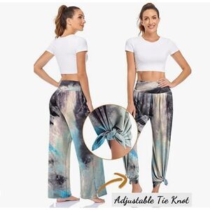 Womens Wide Leg Yoga Pants High Waisted Adjustable Tie Knot Joggers Casual Loose