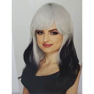Claire's Icing Women's Long Ombre Black & White Wig Synthetic Fiber Heat Resistant Cosplay Costume Party Hair Wig