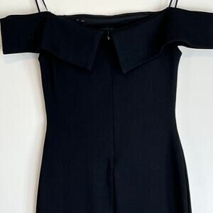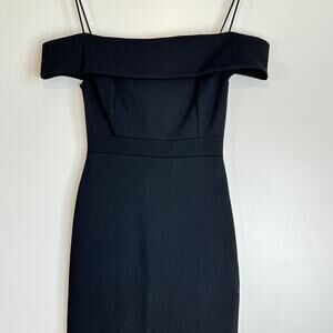 Keep your look simply elegant and polished in our essential Women's Windsor Unforgettable Off the Shoulders Midi Black Dress XS! She features an off-the-shoulder neckline. a fold-over accent. Her slim-fit bodice leads to a figure-flattering midi-length silhouette accented with vertical seams for a streamlined look. The dress is composed of a crepe fabric that offers a form-hugging fit with a moderate stretch.