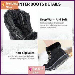 Women's Winter Ankle Boots Fur Lined Non Slip Hiking Snow Boots Zipper