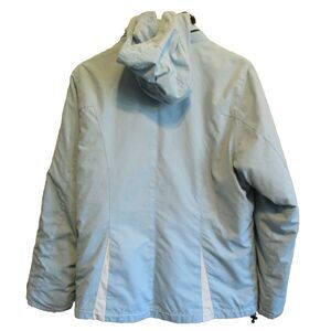 Winter coat is the perfect for this season. It features a removable hood, and convenient 5 zip close pockets to store your belongings. The coat is made of nylon material with a zip closure, zip out lining for added comfort. comes in a beautiful light blue color that will complement any outfit. Designed by ZeroXposur, this women's winter coat is ideal for outdoor activities during the colder months.