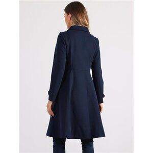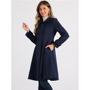Women's Winter Coat Overcoat Lapel Collar Long Swing A Line Blue