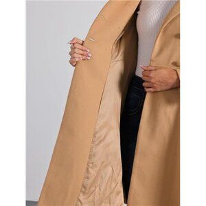 Women's Winter Coat Overcoat Lapel Collar Long Swing A Line Khaki