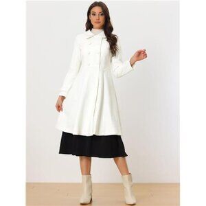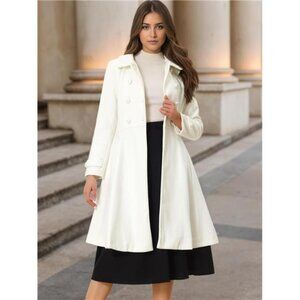 Women's Winter Coat Overcoat Lapel Collar Long Swing A Line White