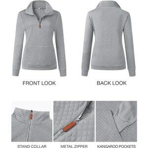 Design Details: This quarter-zip pullover features a stylish quilted look and long sleeves for added warmth. It pairs effortlessly with jeans or leggings for a casual outfit. The half-zip design allows for a versatile neckline style. The kangaroo pocket is both functional and convenient.