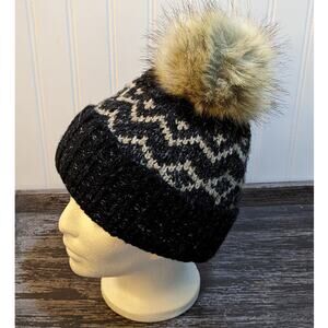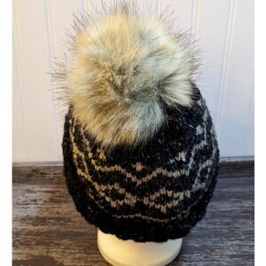 Women's Winter Fashion Hats with Pom Pom Top (set of 2) Brown/Black. Pre owned -gently used.