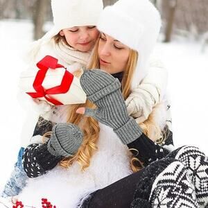 Women's Winter Fingerless Gloves Warm Flip Typing Gloves Knitted Convertible Glo