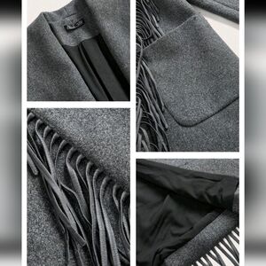 Women's Winter Fringed Decorated Oversized Lapel Melton Jacket, New Year Outfit
