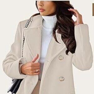 Highlights: Long winter wool coat, classy blazer suit style for a elegant look; Thick wool blend pea coat, keep you stylish both warm during the cold days; Gold button detailed, suitable for ladies dressy professional winter jacket outfits