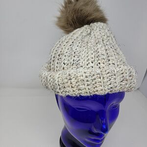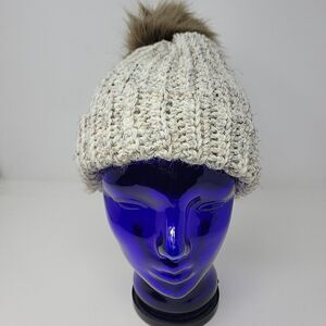Womens Winter Knitted Beanie Hat with Faux Fur Pom Warm Knit Skull Cap