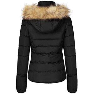 2.The fashionable hooded puffer coat features zippered slanted front hand pockets, full zip up closure and elastic cuff, comfortable and stylish.