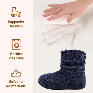 Women's Winter Warm Non Slip Knit Memory Foam Navy Blue Slipper Bootie Shoes