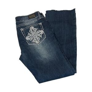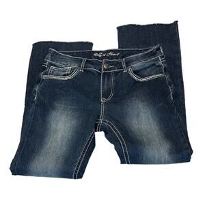 Women's Wired Heart Bootcut Leg Denim Jeans Contrast Stitch Embroidered Size 30