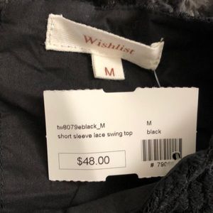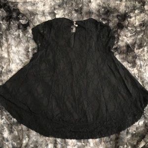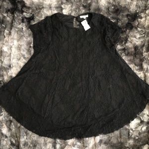 Super cute black lace swing top. Sheer lace on sleeves. New with tags.