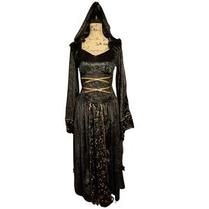 Like New Cold Shoulder Witch / Sorceress Costume with bell sleeves. Velcro enclosure at back of neck.
