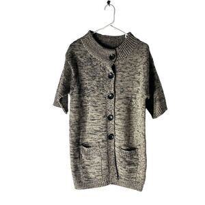 Women’s Wool Blend Knit Button Front Short Sleeve Cardigan Sweater with Pockets