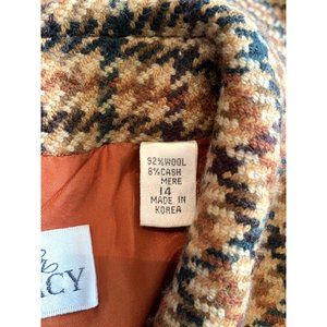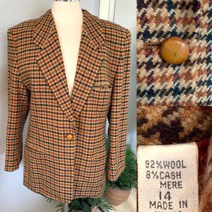 Women’s Wool & Cashmere Houndstooth Plaid blazer size 14 Warm Fall Colors