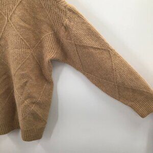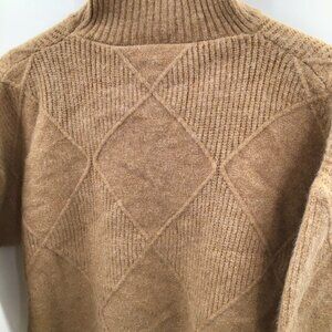 Super soft and cozy turtleneck sweater for fall/winter/spring wear with preppy/quiet luxury vibes. Features a harlequin aka diamond pattern in different knit patterns in a classic tan color, perfect for office or casual wear. Not sure on the brand, as there is no brand label.