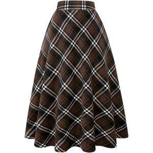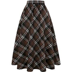 Womens Wool Skirts Elastic Waist A-Line, Long Skirts Brown Coffee