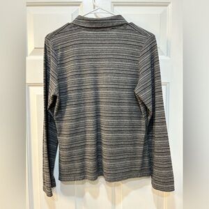 Women's Woolrich Striped Pullover Blouse V-Neck Collared Casual Long Sleeve Sz M