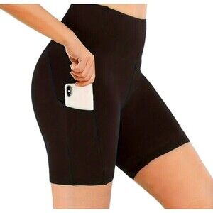 Women's (Workout)-(Leggings)-(Biker)-(Shorts)-(With Pocket)-(Black)-(Size XL)-(New)-$20.00