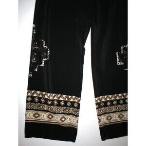 Womens Worth New York $498 16 USA Print Silk Pants Black Brown Wide Ethnic Borde