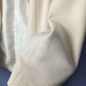 Women's blazer. 100% Pure Wool. Made in the Dominican Republic. Button closure. Two pockets in front. Ivory - light cream color. White lining inside. Overall good condition **light stain on sleeve shown in last photo**