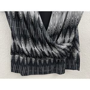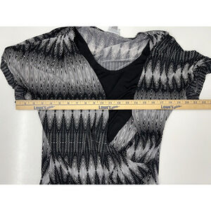 Womens Worthington Stretch Short Sleeve Faux Wrap Black Blouse Size Small