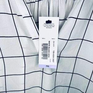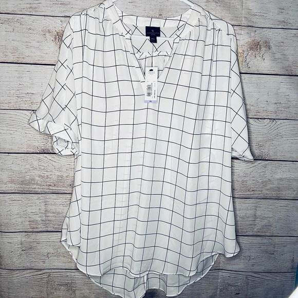 Women’s Worthington white and black grid patterned blouse, NWT. V neck, Size PXL. Measurements 26”x29”.