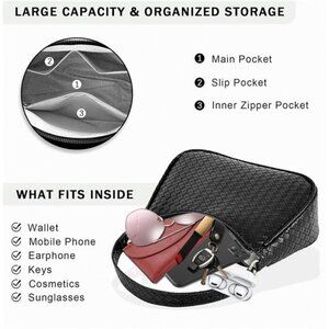 Structure:This shoulder bag has an interior zipper pocket and card holder, allows you to conveniently carry your essentials, such as your purse, cosmetics, skin care products, keys, sunglasses