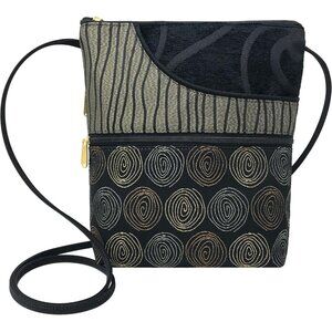 Features: Crafted from hand-cut tapestry fabric with a bold, artsy design and metallic accents, this lightweight bag is super functional. It features a zipper closure, an inside zipper pocket for your valuables, and full-length zip pockets on the front and back for your phone or essentials. The clever nylon microfiber cord adjusts from 6 to 56 inches, so you can wear it as a clutch, shoulder bag, or crossbody. The cutaway front pocket is perfect for holding a water bottle.
