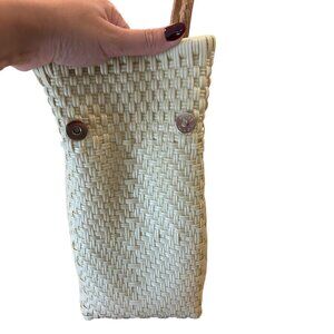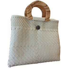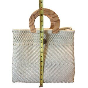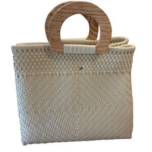 Women’s Woven Tote Wicker/Rattan Style Ivory Wooden Handle Med-large Chic Modern