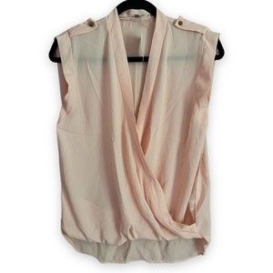 Women's Wrap Top Blouse Pink Chiffon Sheer Draped Open Front Shirt Medium M