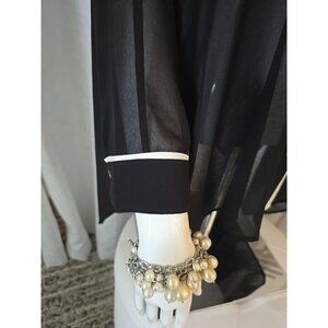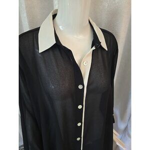Women's Wynne Layers Black White Sheer Tuexdo Button Shirt Long Sleeve Top M