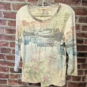 Women's XCIT USA Fairy Core Long Sleeves Bedazzled Top Large Y2K