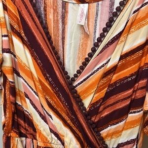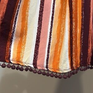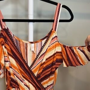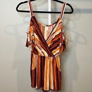 Women’s XHILARATION Romper Striped Cold Shoulder with Pom-Pom Trim & Pockets
