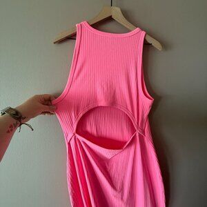 Women's XL Aerie Neon Pink Open Back Summer Dress Wide Ribbed