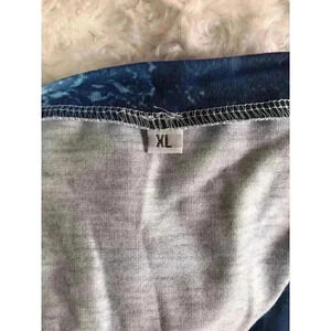 Womens XL Blue White Brown Water Color Beachy Blouse Unbranded 3/4 Sleeves