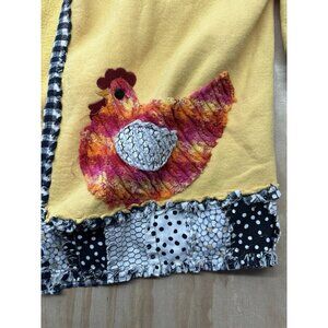 • Cheerful yellow base with whimsical chicken appliqué design